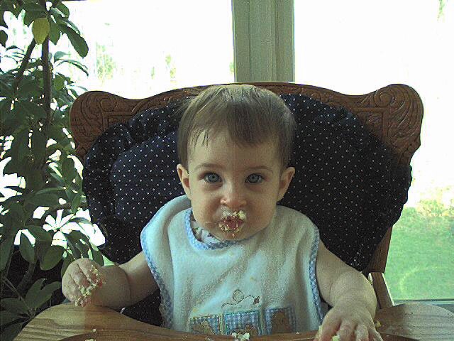 Rachel on her birthday, 4/10/02. This was Wednesday night, just the three of us, before the big party on Saturday, 4/13.